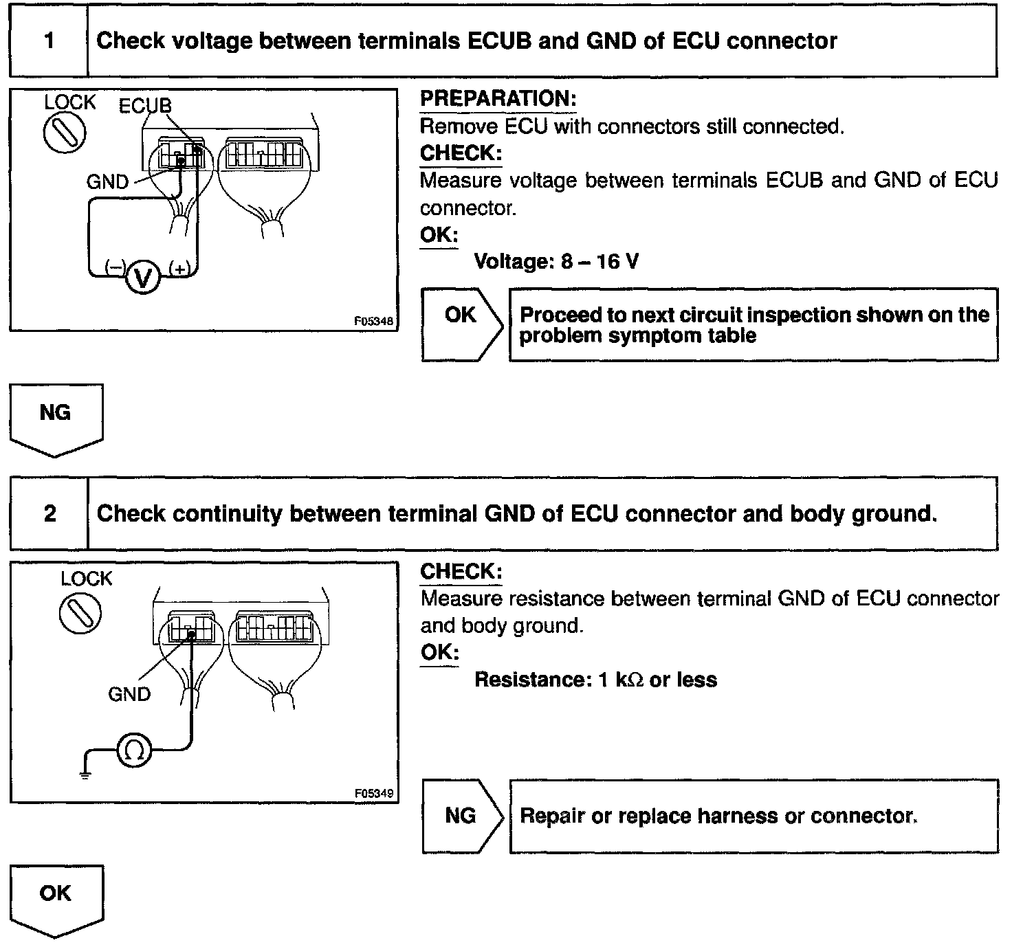 The ECU power source supplies power to the CPU and sensors, etc. power is supplied to the ECU even when the ignition switch is lock position.