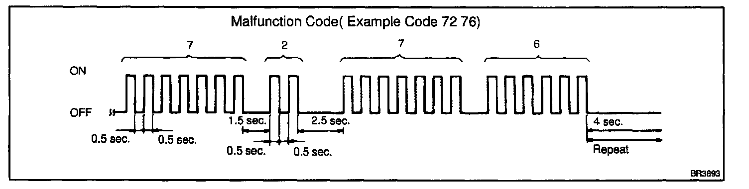 - If every sensor is normal, the normal code is out put (A cycle of 0.25 sec. ON and 0.25 sec. OFF is repeated).