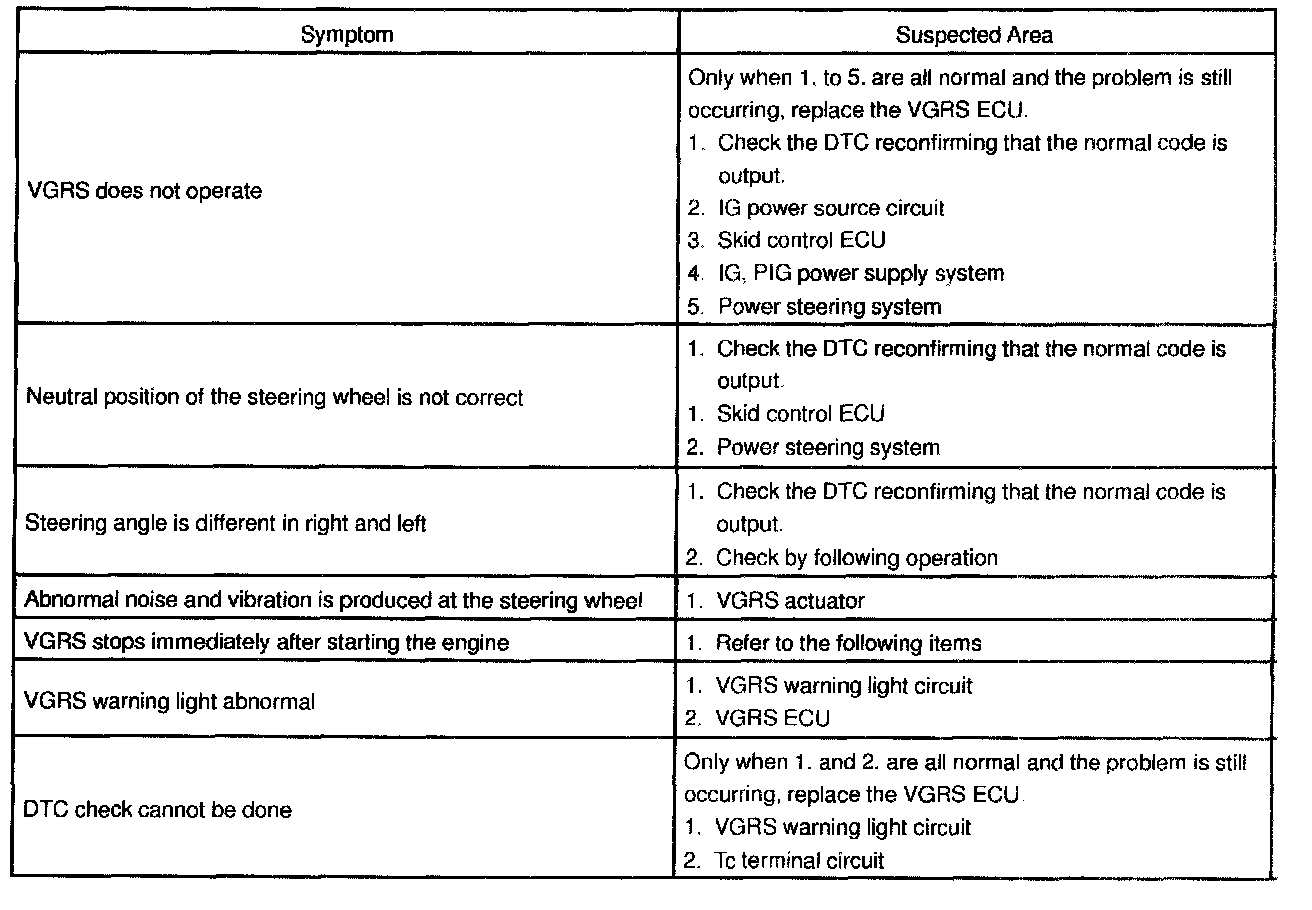 If a normal code is displayed during the DTC check but the problem still occurs, check the circuits for each problem symptom in the order given in the table and proceed to the relevant troubleshooting.