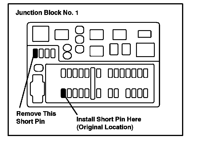 1. Install the Short Pin to its original location in junction block No. 1 in the engine compartment with the ignition switch off.
