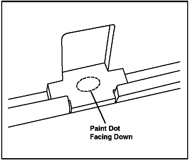 6. Install the small metal shim (P/N PT296-60062-SK), with the paint dot facing down, into the shroud latch opening. Be sure it is secure.