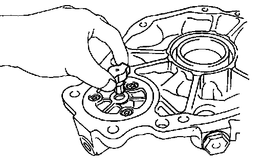 Remove the 3 bolts and oil pump plate.