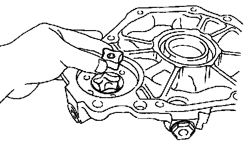 NOTICE: Align the oil hole of the rear extension housing and oil groove end of the oil pump cover.