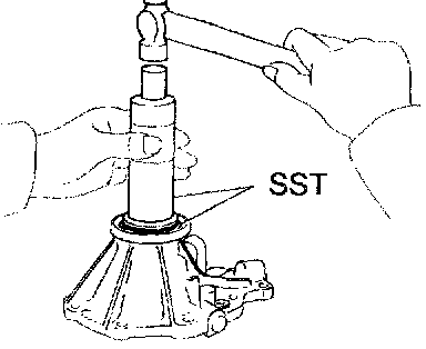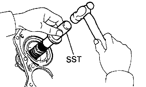 b. Using SST and a hammer, drive in the oil seal.