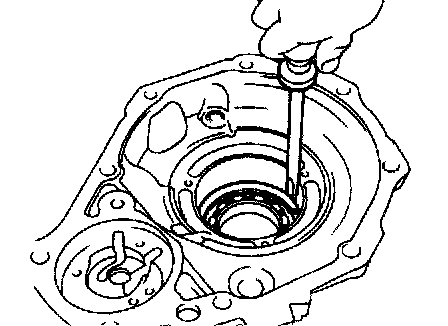 Using a screwdriver, pry out the oil seal from the rear extension housing.
