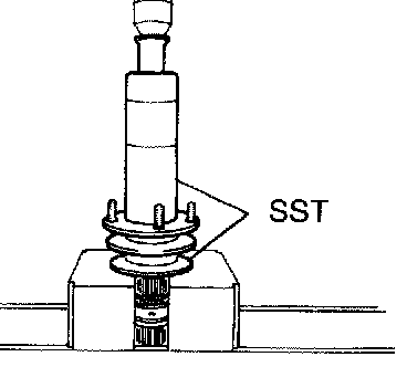 a. Using SST and a press, install the ball bearing.