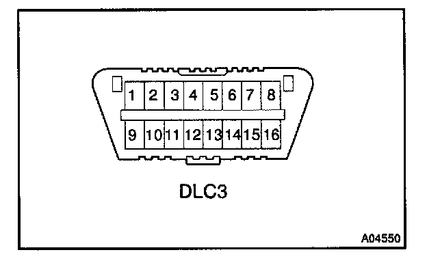 Inspect the DLC3The vehicle's ECM uses the ISO 9141-2 communication protocol. The terminal arrangement of the DLC3 complies with SAE J1962 and matches the ISO 9141-2 format.