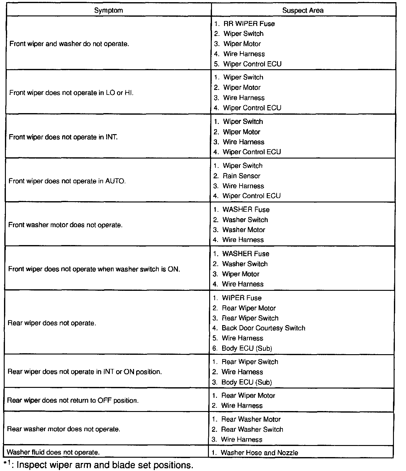 Problem Symptoms Table - Wiper And Washer System: