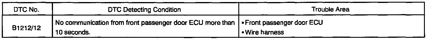 DTC 12 Front passenger door ECU communication stop