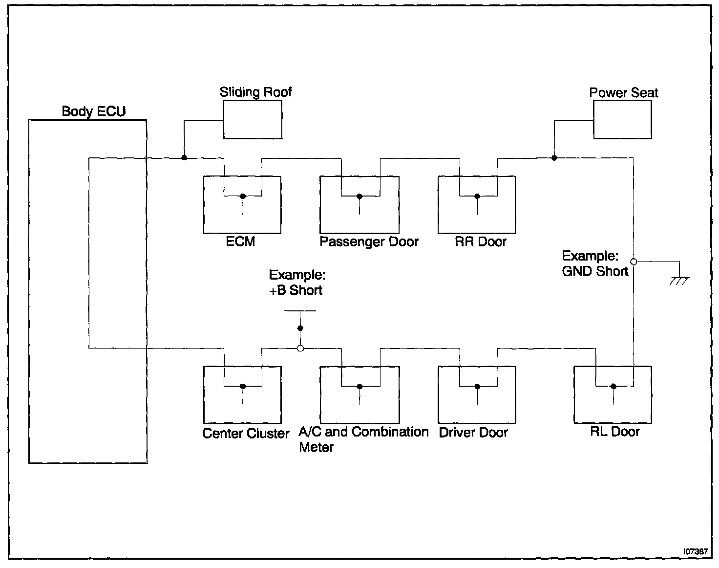 This DTC is output when +B or GND short occurs on door system communication bus. If +B or GND short is detected on door system communication bus, separate it by bus cut relay in body ECU to prevent while communication buses' failure.