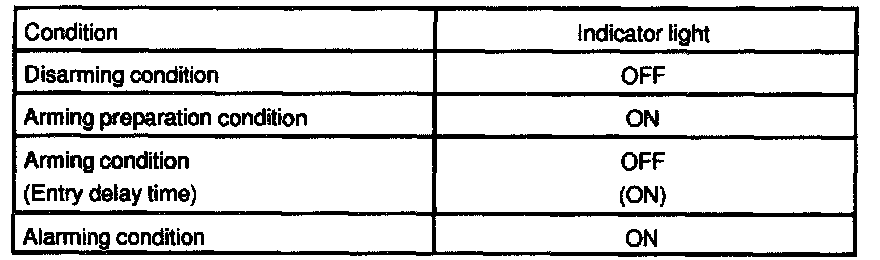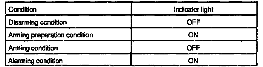 HINT: Even in disarming condition, the indicator light flash. (Due to the signal output form immobilizer system). The indicator always flashes receiving the signal from the immobilizer system at any time in the arming condition.
