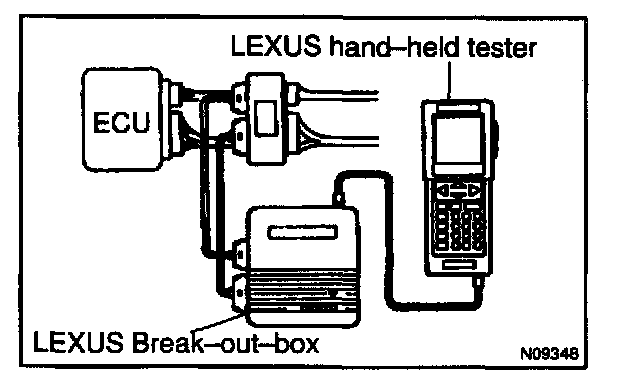 c. Hook up the LEXUS break-out-box and LEXUS hand-held tester to the vehicle.