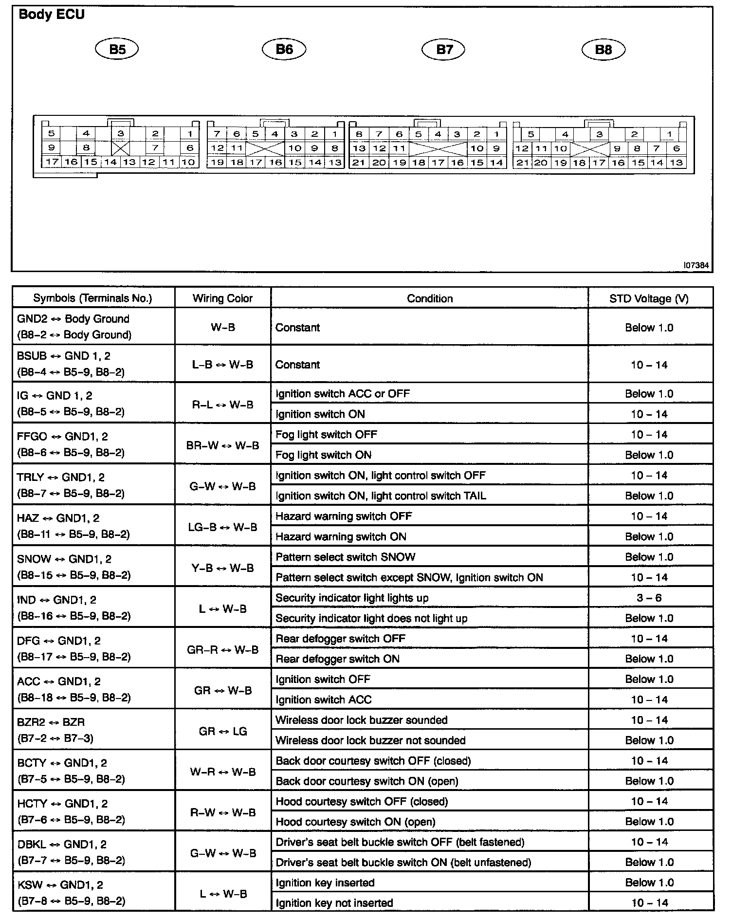 Pinout Values and Diagnostic Parameters