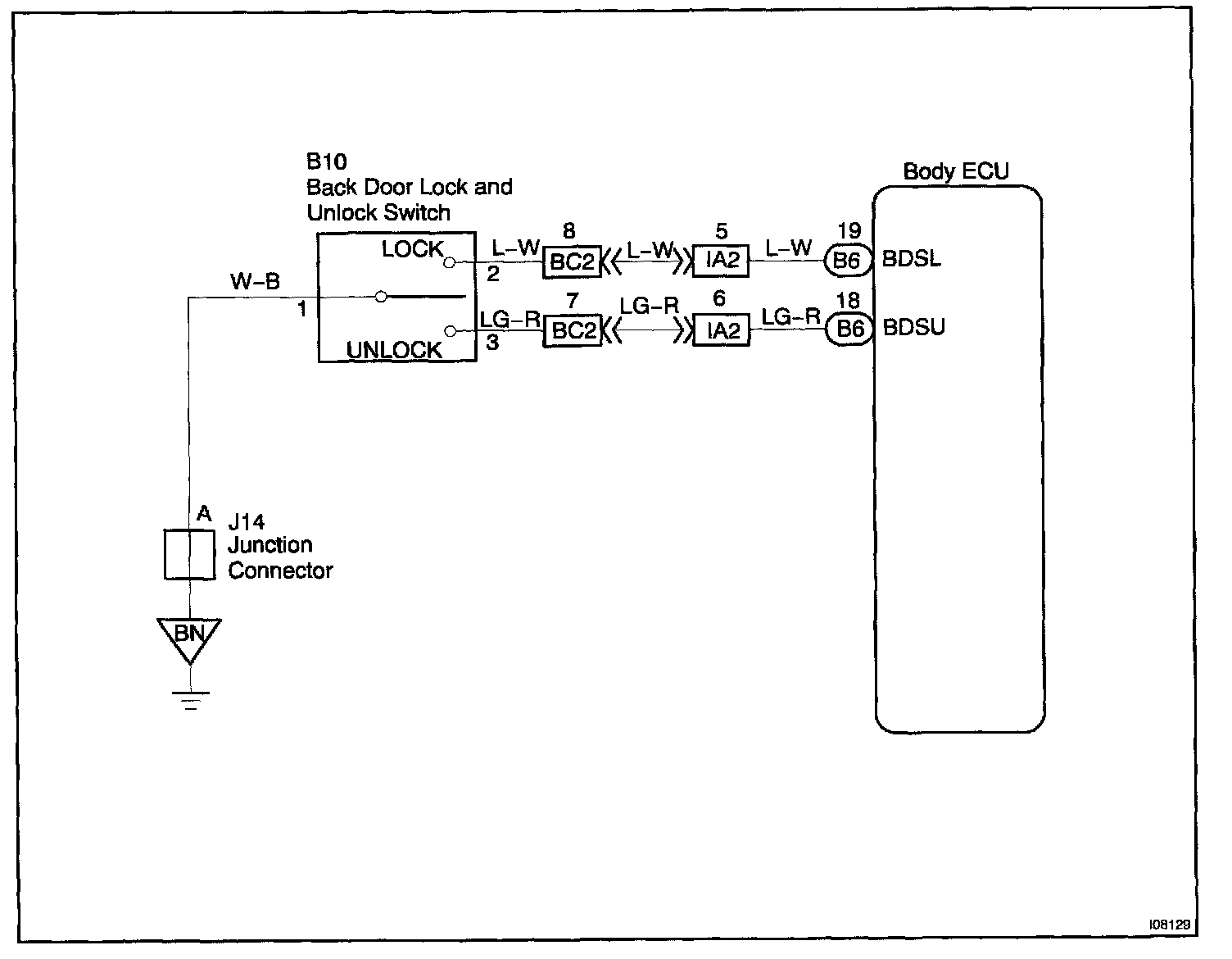 CIRCUIT DESCRIPTIONThe back door courtesy switch goes on when back door is opened and goes off when back door is closed.