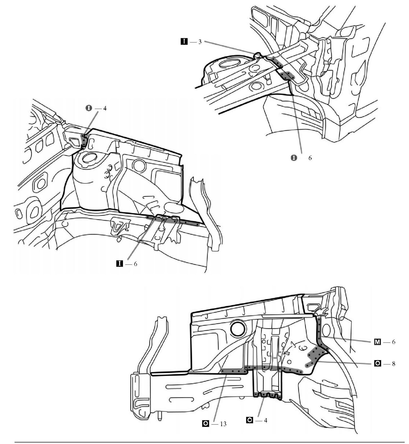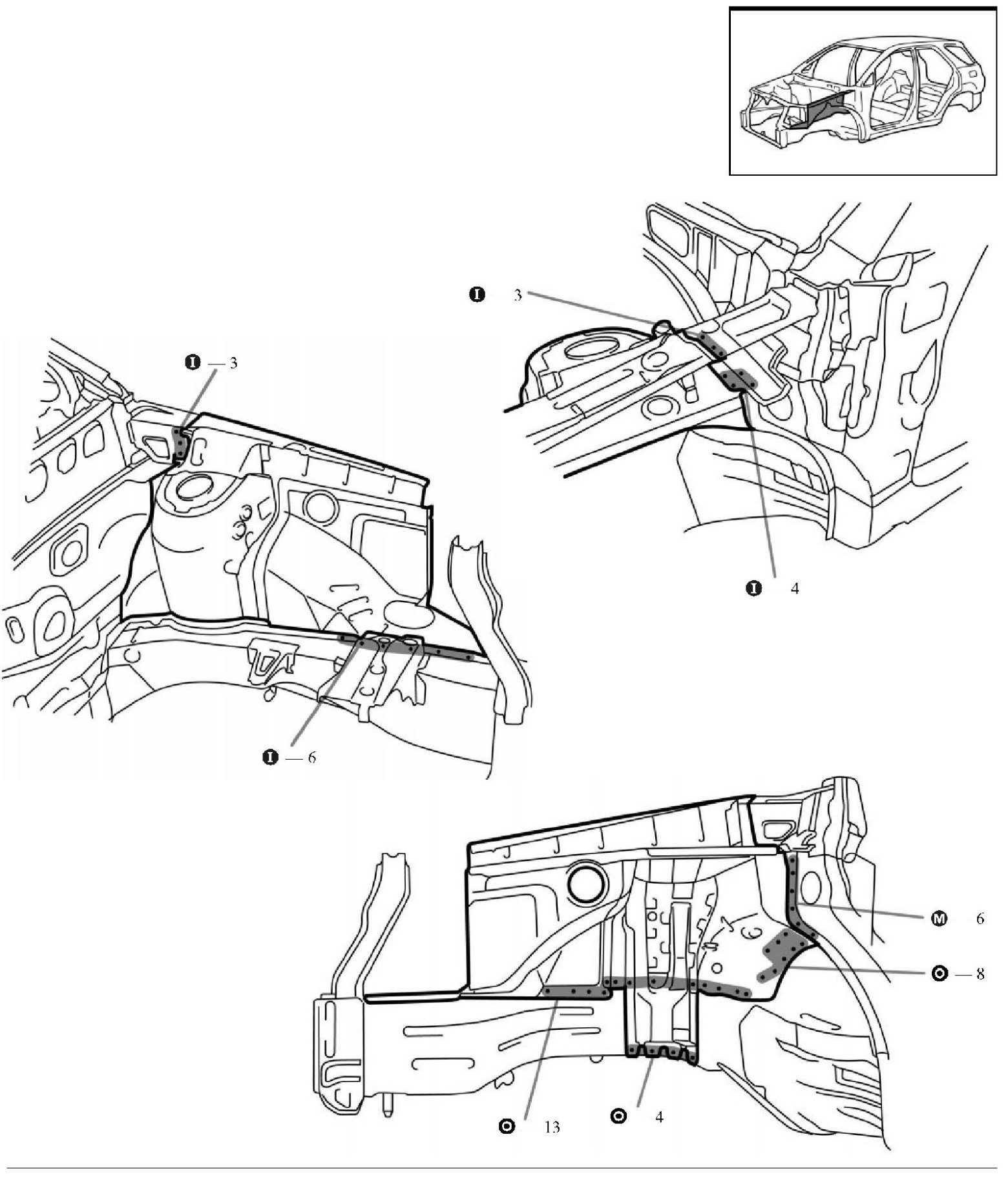 1. Temporarily install the new parts and measure each part in accordance with the body dimension diagram.
