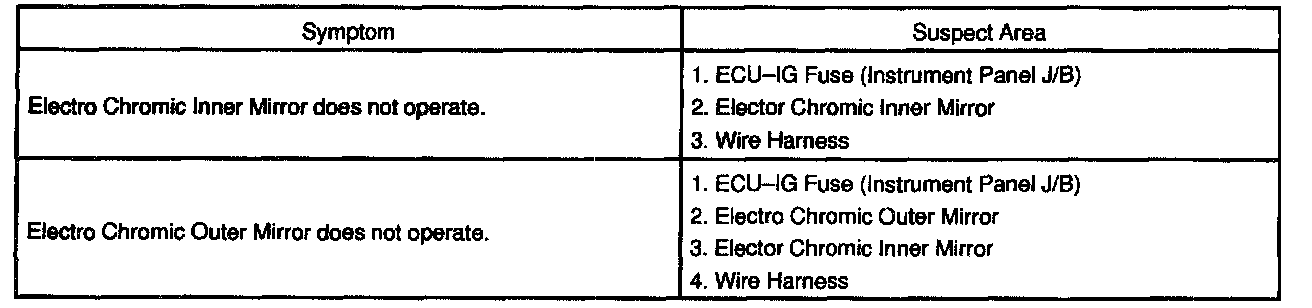 Problem Symptoms Table - Electronic Chromic Mirror System: