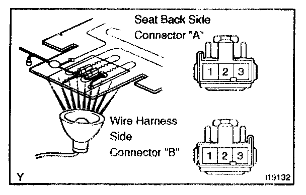 Inspect the seat back continuity between terminals, as shown.