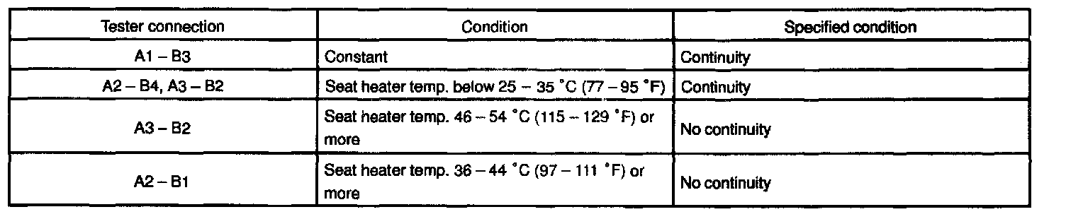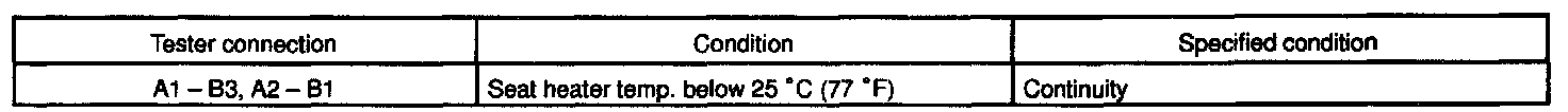 Inspect the seat heater inner cushion and front cushion continuity between terminals, as shown.
