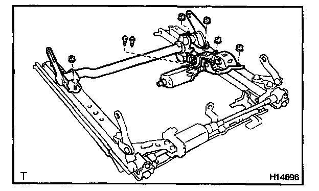 b. Remove the 5 nuts, plate and vertical seat link sub-assembly.
