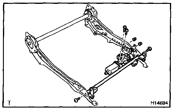 Using a torx socket wrench, remove the 4 bolts and reclining seat adjuster assembly with No. 2 vertical seat link sub-assembly.