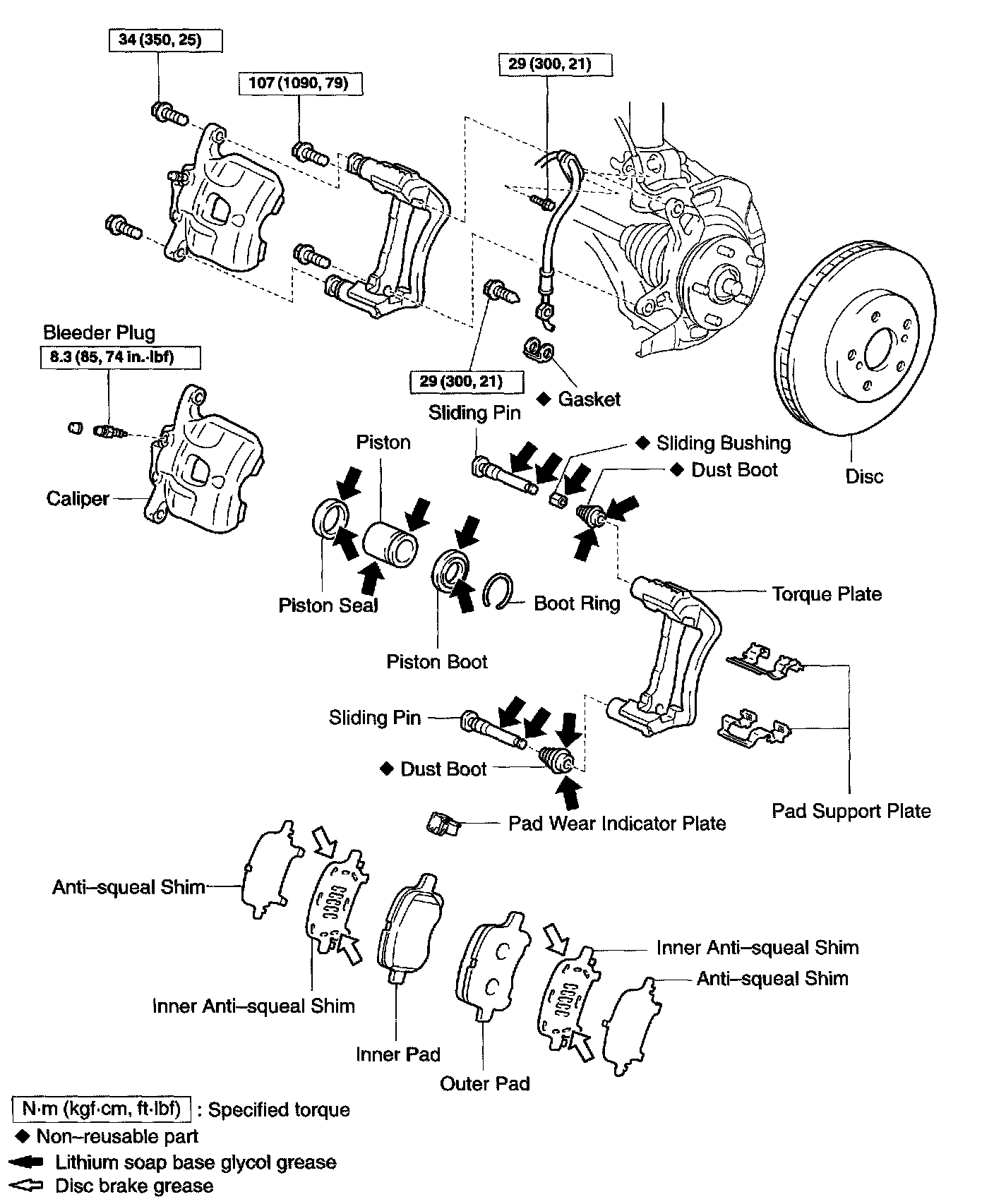 NOTICE: At the time of reassembly, confirm that the metal plate portion of the dust boot fits snugly in the torque plate.