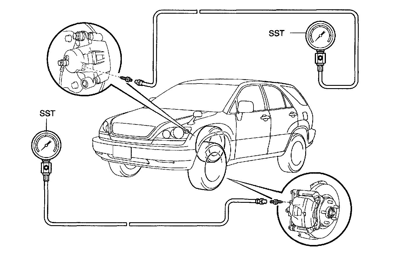 3. RAISE MASTER CYLINDER PRESSURE AND CHECK REAR CALIPER PRESSURE