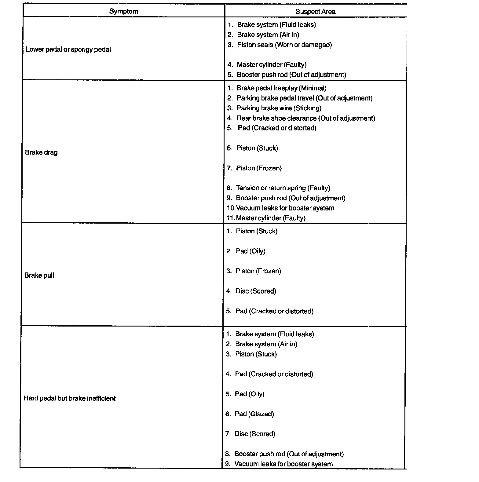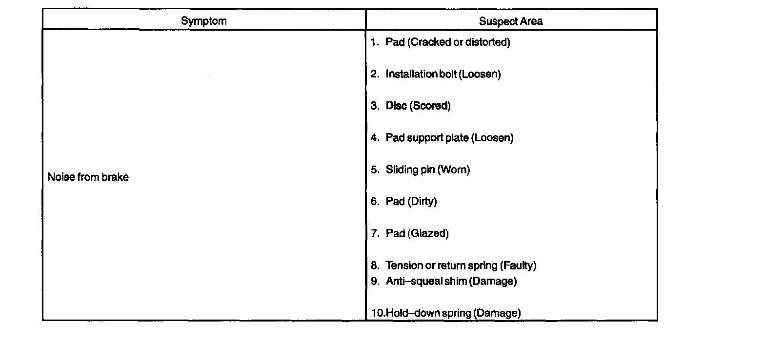 PROBLEM SYMPTOMS TABLE
