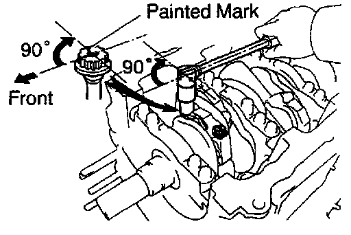 c. Mark the front of the main bearing cap bolts with paint.