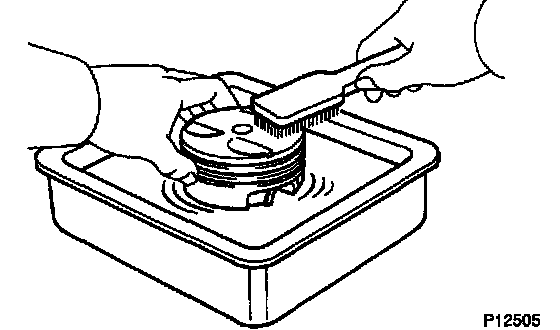 c. Using solvent and a brush, thoroughly clean the piston.