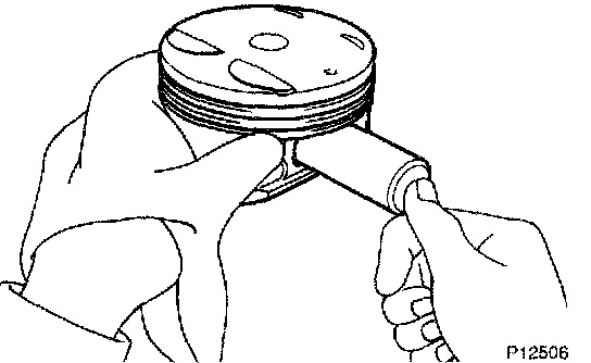 e. Check the piston pin fit at normal room temperature. Coat the piston pin with engine oil, and push it into the connecting rod with your thumb.
