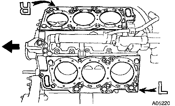 b. Place the 2 cylinder heads in position on the cylinder head gaskets.