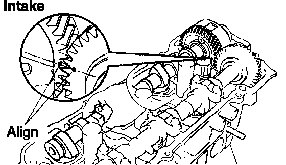 2. Align the timing marks (2 dot marks) of the camshaft drive and driven gears.