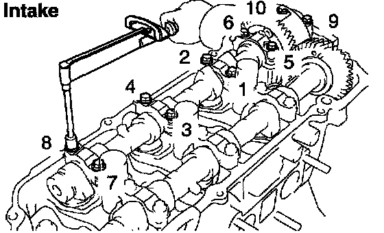 e. Retighten the cylinder head bolts by 90° in the numerical order shown.