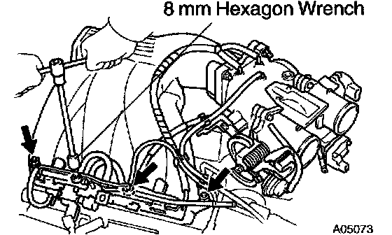 b. Using an 8 mm hexagon wrench, install the cylinder head bolt on each cylinder head, then repeat for the other side, as shown.