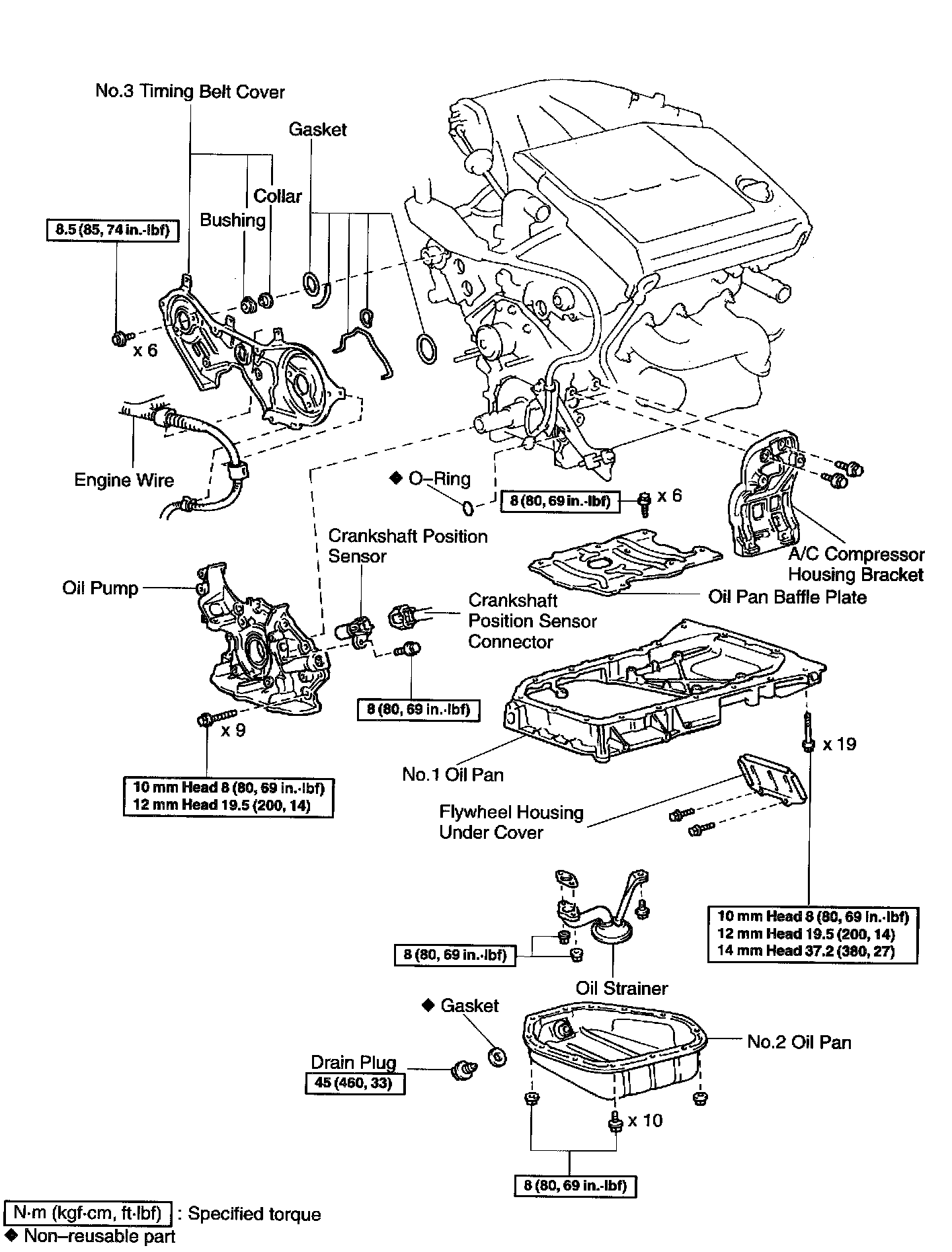 ^ Be careful not to damage the No.2 oil pan flange.