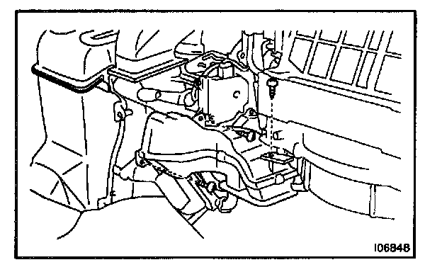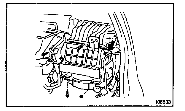 d. Remove the nut, 2 bolts, screw and blower unit.