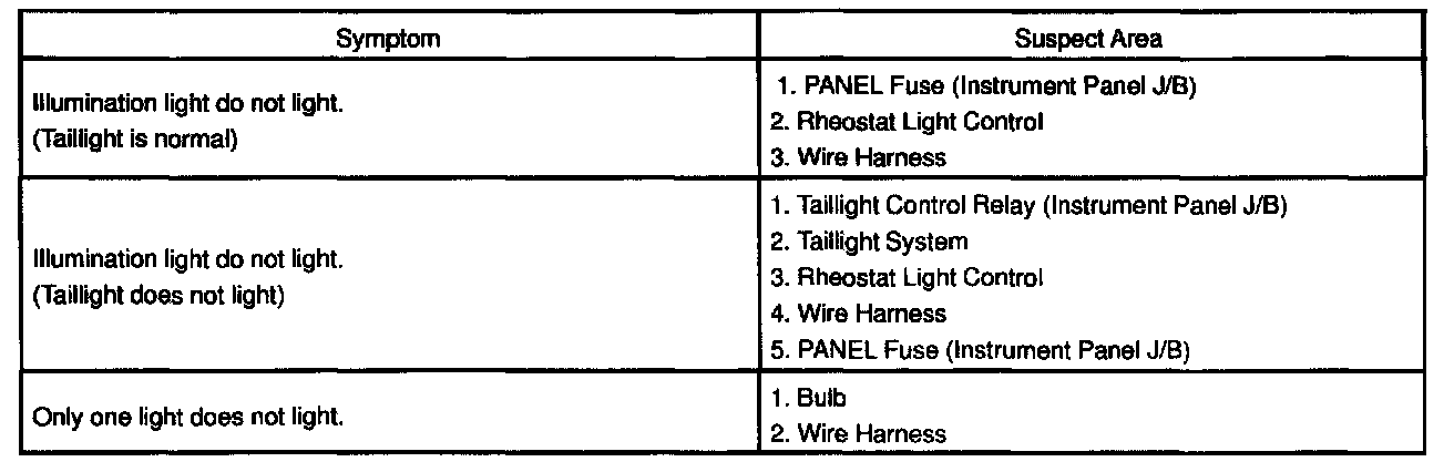 ILLUMINATION LIGHT SYSTEMDIAGNOSIS BY SYMPTOM