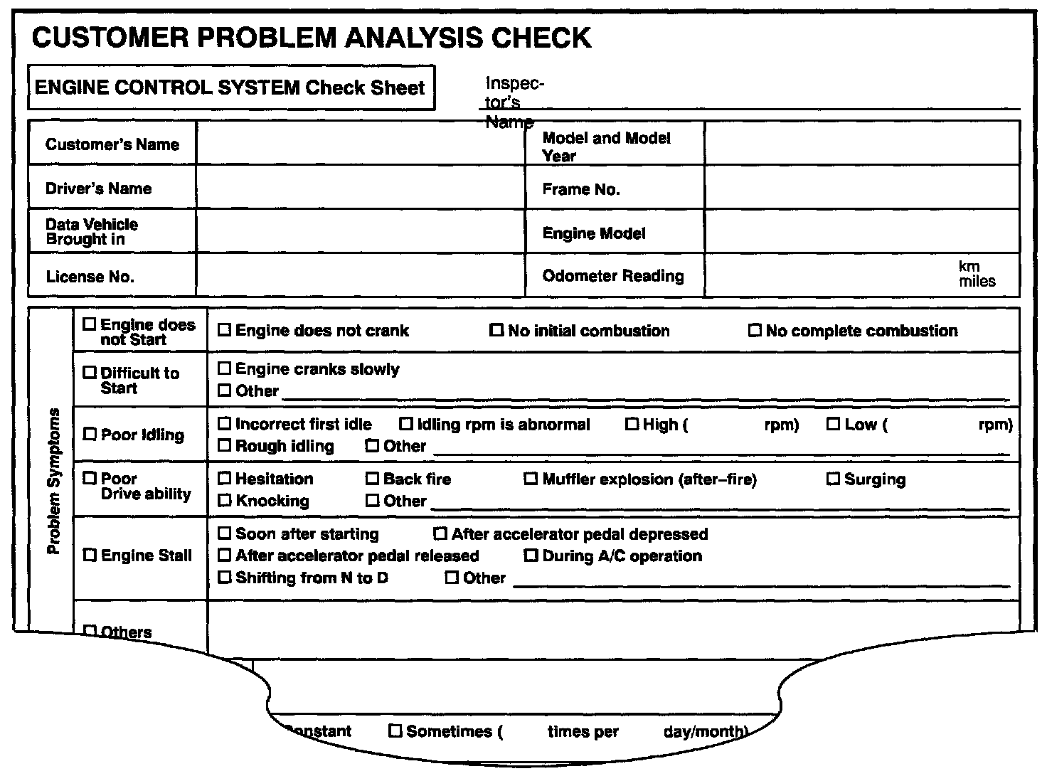 (Sample) Engine control system check sheet
