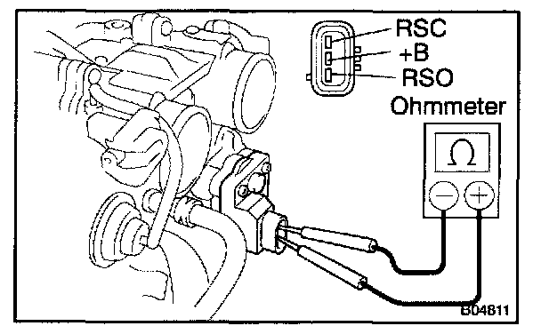 b. Using an Ohmmeter, measure the resistance between terminal +B and other terminals (RSC, RSO).
