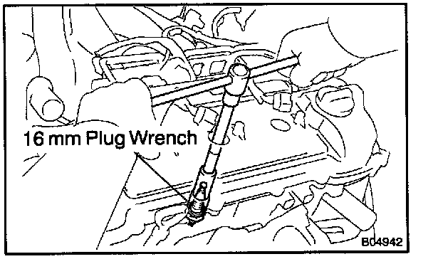 c. Using a 16 mm plug wrench, remove the spark plugs.