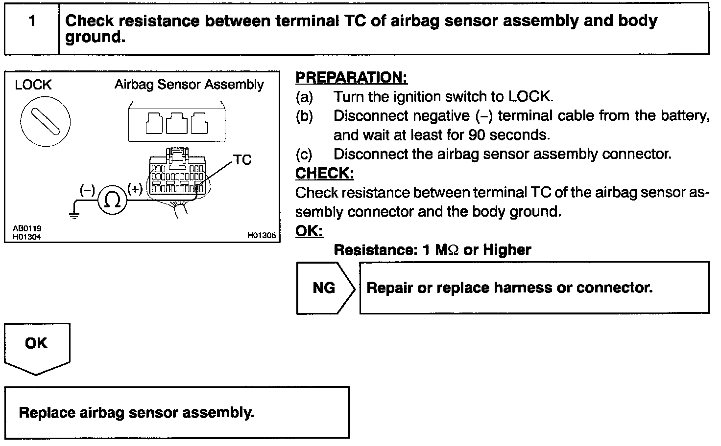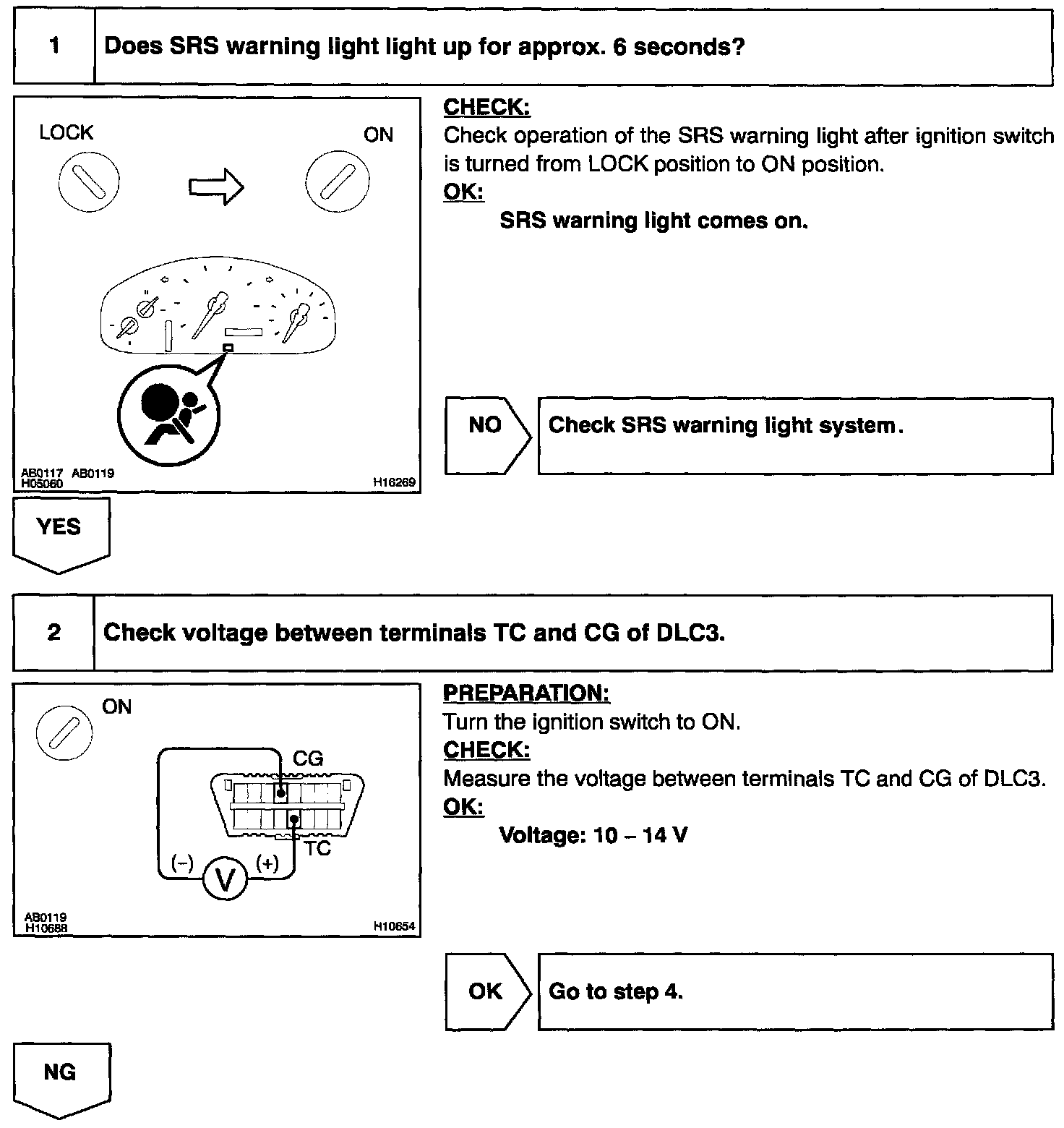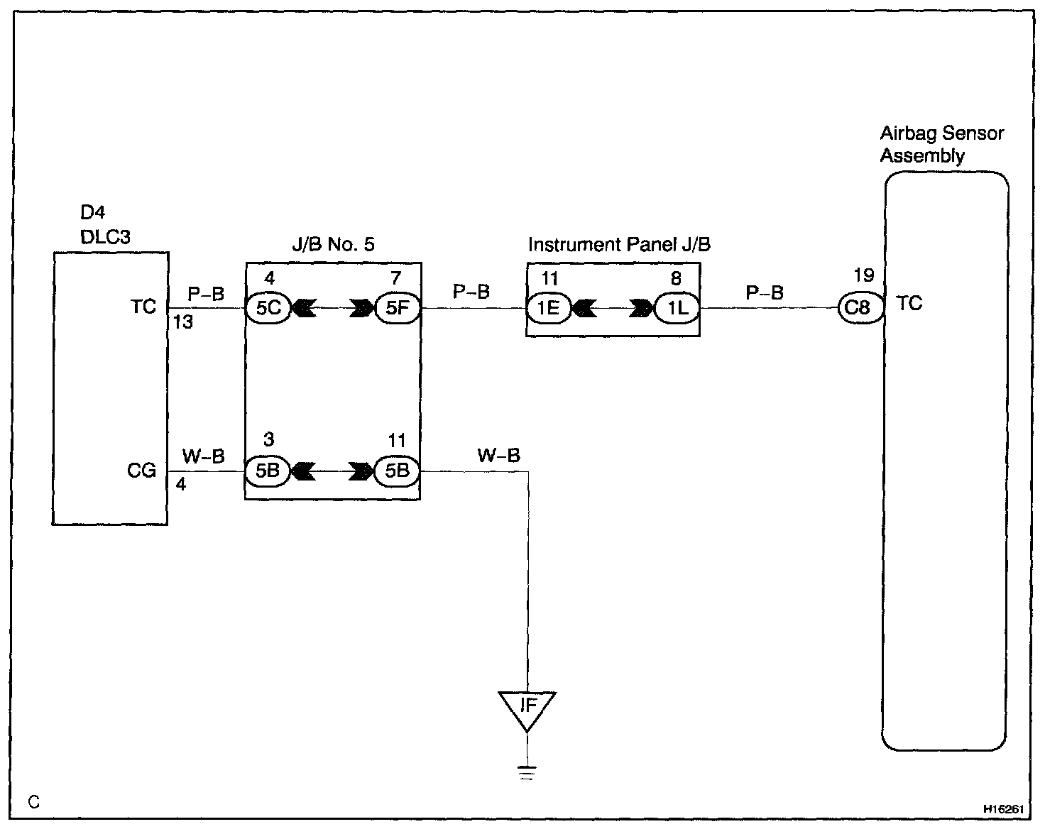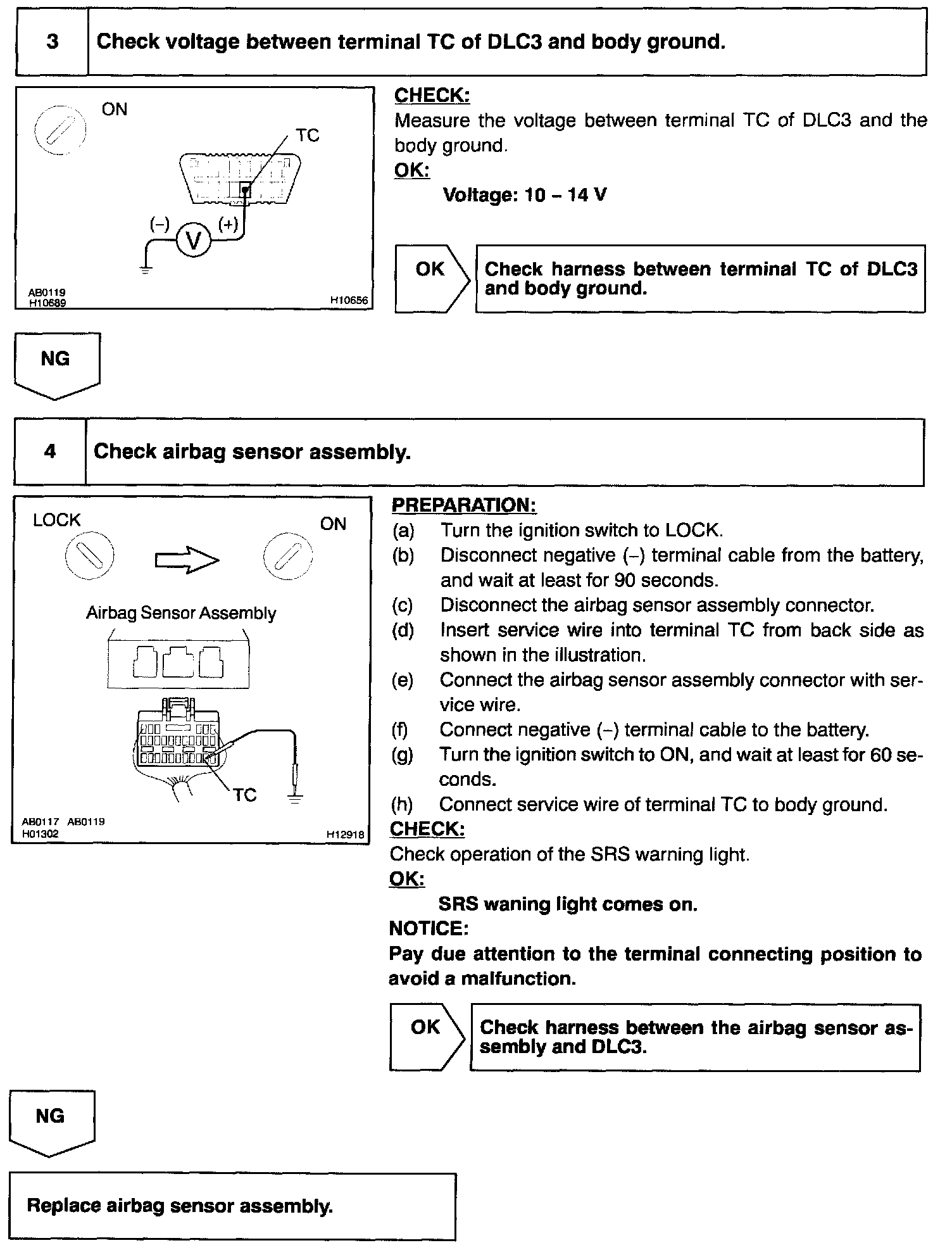 CIRCUIT DESCRIPTIONDTC indicated mode is set by connecting terminals TC and CG of the DLC3 the airbag sensor assembly.