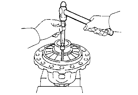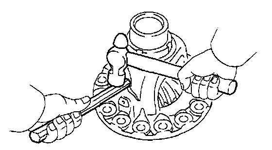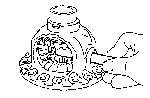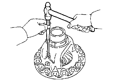 a. Using a pin punch and hammer, drive out the pin from the ring gear side.