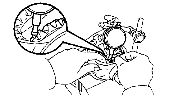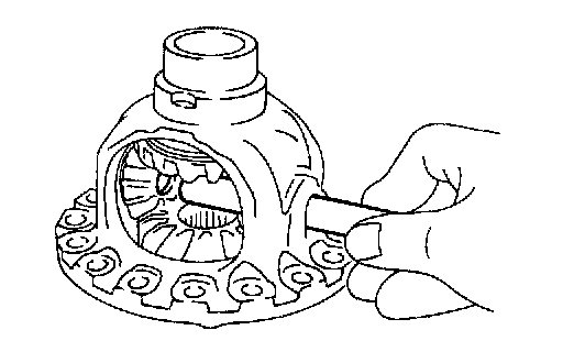 a. Measure the side gear backlash while holding 1 pinion gear toward the case.