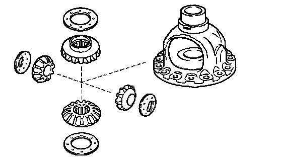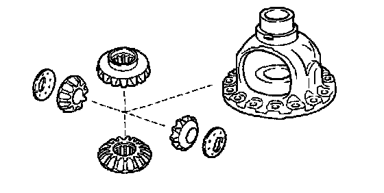 c. Remove the 2 differential pinions, 2 differential side gears, 2 differential pinion thrust washers and 2 differential side gear thrust washers.