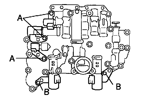 a. Remove the 5 bolts and 5 shift solenoid valves.