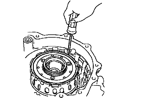 Using a screwdriver, remove the snap ring and front planetary ring gear from the brake hub.
