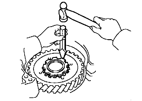 d. Using a brass bar and a hammer, remove the 2 bearing outer races.