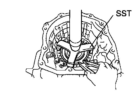 c. Using SST, remove the needle-roller bearing from the transaxle case.