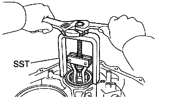 c. Using SST, remove the tapered roller bearing RH.