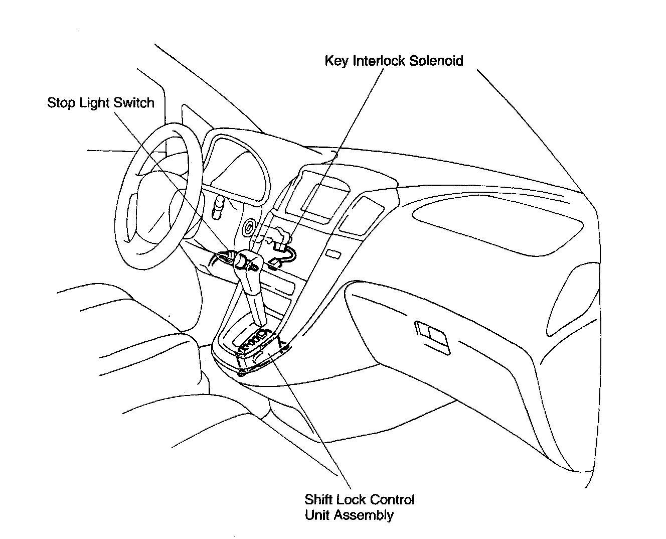 HINT: Do not disconnect the shift lock control unit assembly connector.